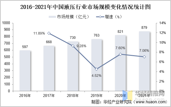 2016-2021年中國液壓行業(yè)市場規(guī)模變化情況統(tǒng)計(jì)圖