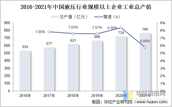 2016-2021年中國液壓行業(yè)規(guī)模以上企業(yè)工業(yè)總產(chǎn)值